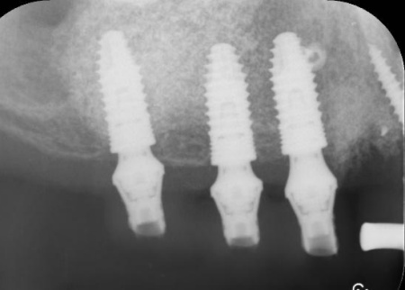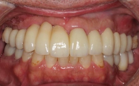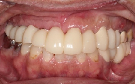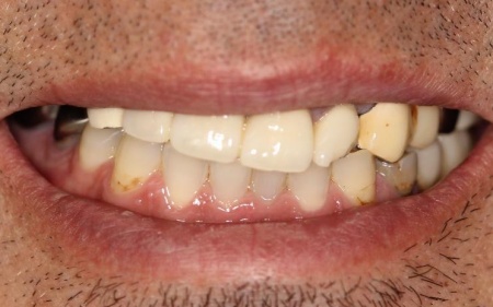 次に、右上奥歯と前歯にインプラント治療を行いました。