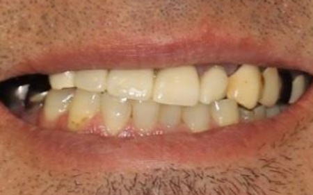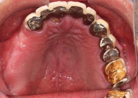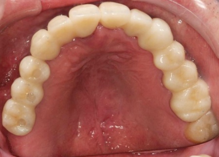 拝見したところ、右上奥歯4本が欠損しており、その影響で全体の噛み合わせのバランスが崩れていました。