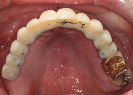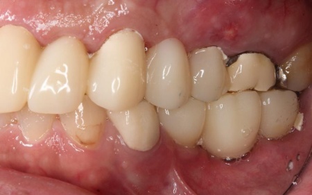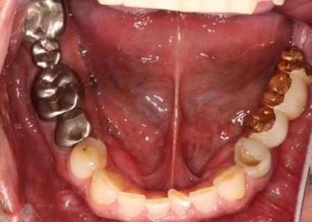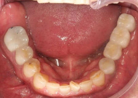 左下奥歯1本、右下奥歯2本に装着されていた古い被せ物はすべて外し、ジルコニアクラウンと交換しました。