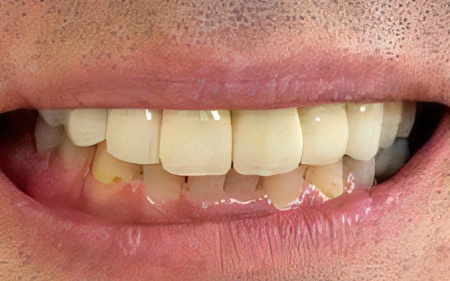 欠損部が多い状態が長期間続いたことで噛み合わせが低く、新しい歯を入れるための高さも不足していました。