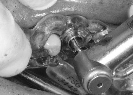 ①右上前歯のブリッジを外し、右上前歯2本を抜く
