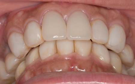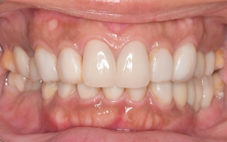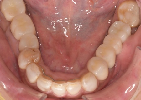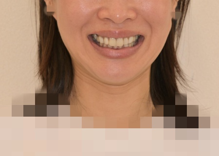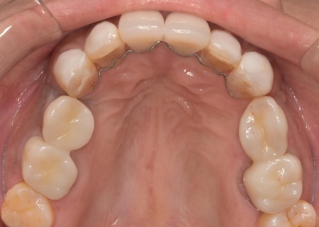 加えて、上前歯4本(左右側切歯・犬歯)と下前歯5本(左右中切歯・側切歯・右下犬歯)は、ダイレクトクラウンによる修復を行いました。