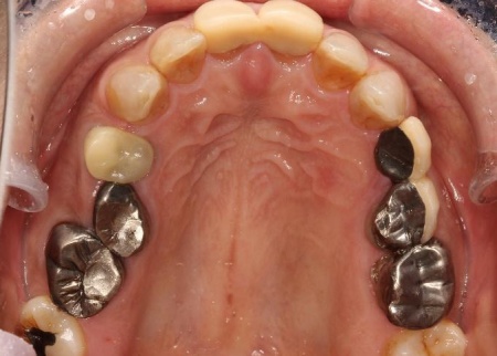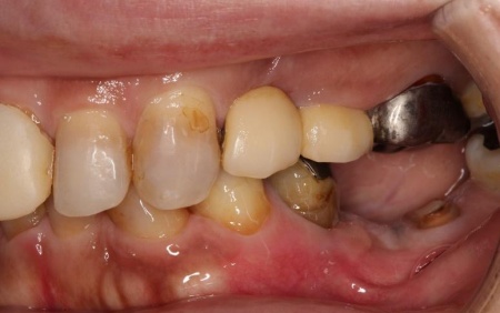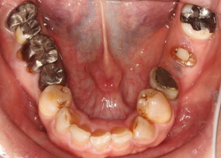 また、下の歯は歯根だけが残る「残根」もあり、全体的に噛み合わせが不安定です。